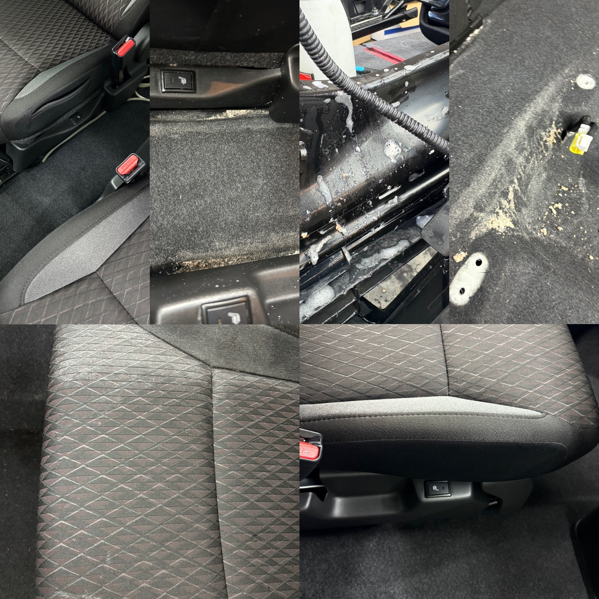 ぱっと見綺麗に見える車内でも、実際はかなり汚れが蓄積しています! 車内インテリアは天井、シート、フロアと布張りになっておりますので、ご家庭でのお手入れには限界があります。